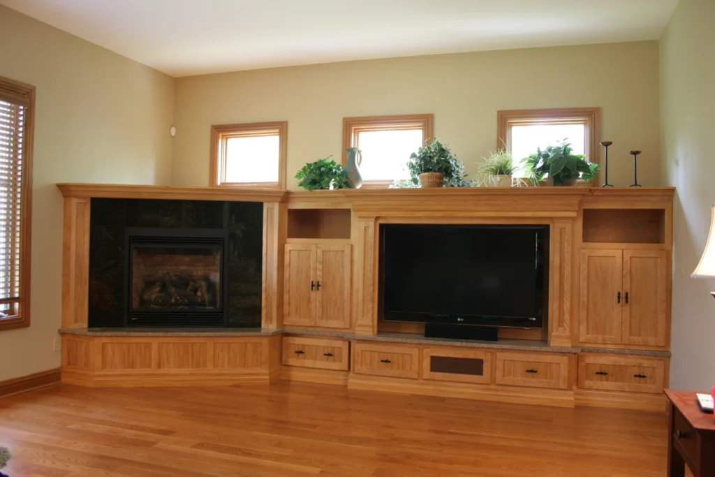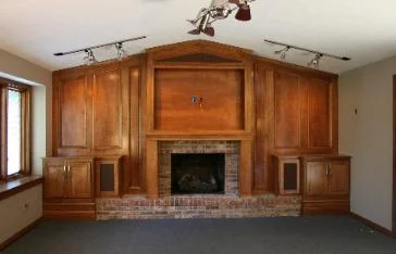 The wall unit above was removed and Shadowhill, working with a designer, was commissioned to build and install the entertainment wall you see here. When it was finished the whole unit was 20 feet by 20 feet. It was impossible to take the whole project in one shot.
