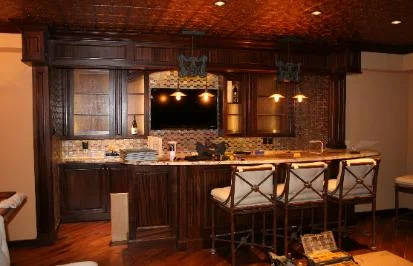 This basement remodel included a very large bar and wine room. It was